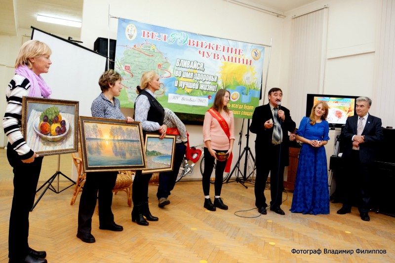 Концертная программа вечера была разнообразная: песни вокального ансамбля «Кăмăл» и хора ветеранов «Серебряные годы» под руководством хормейстера, заслуженного работника культуры Чувашии Ивана Трубникова (из ДК «Химик»), песни под гитару барда и композитора Эльвиры Соловьевой, индийские танцы Александры Прохоровой - дочери известной велосипедистки Альбины Федоровой, неоднократной чемпионки Чувашии, песни на чувашском языке Светланы Сусловой, стихи «музы велодвижения» Элеоноры Архонта. Ведущая вечера Марина Деньгина пленила души слушателей мастерским исполнением акапеллы «Горница», а Любовь Синявская – вторая ведущая, умело управляла сценарием. Ветераны велоспорта: Владимир Краснов (профессор, заслуженный тренер России), Николай Никитин (мастер спорта, заслуженный тренер Чувашии), Андриян Филиппов (мастер спорта, тренер чемпионки мира Ирины Калентьевой), Дмитрий Белянин (пятикратный чемпион России по БМХ) и Владимир Григорьев (мастер спорта СССР и неоднократный чемпион Чувашии) поделились с участниками вечера своим видением развития спорта высших достижений.