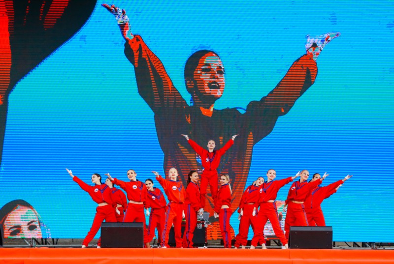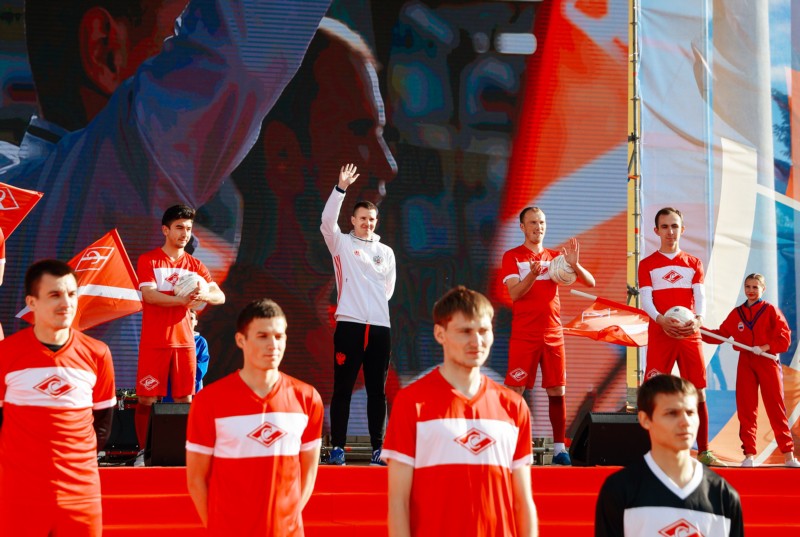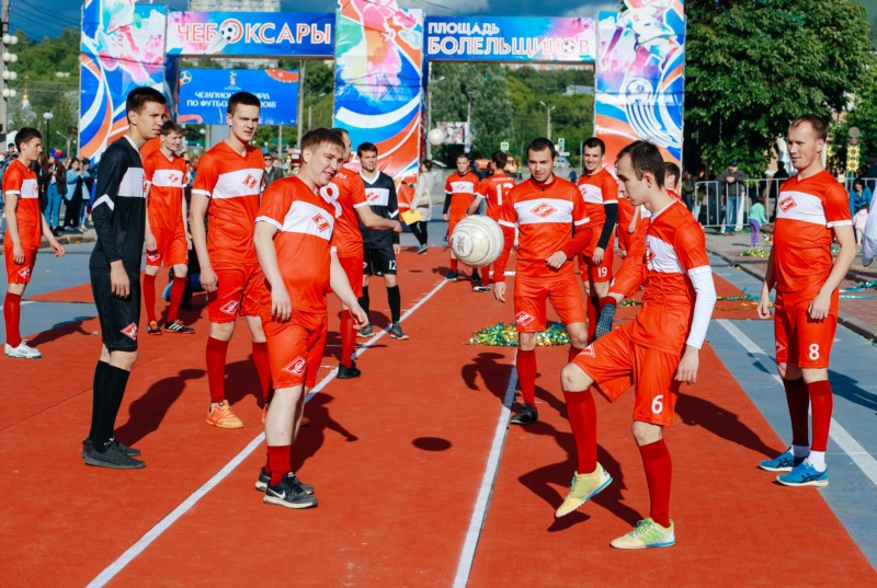 Торжественное открытие фан-зоны началось с выступления творческих коллективов и спортивных представлений. Главное внимание горожан было приковано к новой профессиональной футбольной команде "Спартак Чебоксары". Она была создана в апреле 2018 года по инициативе главы администрации города Чебоксары Алексея Ладыкова. Молодая команда успешно стартовала на чемпионате Чувашской Республики. Ее тренер Евгений Портнов, имеющий опыт наставнической работы в российской женской сборной по футболу, отметил, что "в Чебоксарах созданы все условия для тренировки ребят – и на стадионе "Труд", и на стадионе "Олимпийский". Скоро мы переедем на свою базу мирового уровня – реконструированный стадион "Спартак". В команде сейчас идут обсуждения главного спортивного события мирового масштаба, будем следить за матчами".