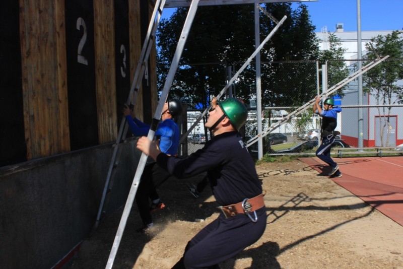 Сотрудники противопожарной службы соревновались в преодолении 100-метровой полосы препятствий, подъеме по штурмовой лестнице на четвертый этаж учебной башни. Завершающим этапом турнира стало проведение боевого развертывания.