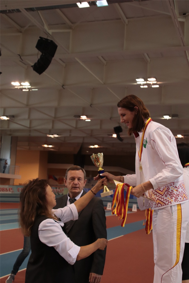 После приветствия на импровизированной сцене манеже состоялось награждение победителей и призеров по волейболу, проведенного ранее в рамках зачета VI Спартакиады трудовых коллективов. Среди мужчин сильнейшими стали работники СХПК "Труд" (Яльчикский район), серебро завоевали представители ПАО "Химпром", третьими стали волейболисты АО "Элара". Среди женских команд чемпионками стали участницы команды Чувашского отделения № 8613 ПАО "Сбербанк", а второе место заняла команда работниц ОАО "Букет Чувашии". Медали, кубки и дипломы им вручил министр физической культуры и спорта Чувашской Республики Михаил Богаратов.