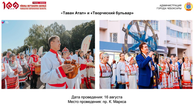 Начальник управления культуры и развития туризма Людмила Маркова доложила, что по итогам республиканских оргкомитетов принято решение, что 100-летие Чувашии будут праздновать дважды: в июне и в августе.