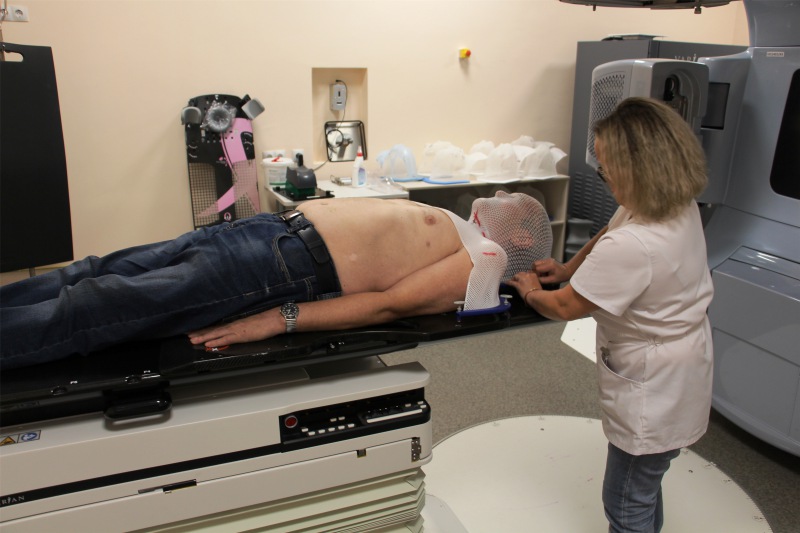 Кроме того, в процессе лечения используется фиксирующее устройство (индивидуальная маска), которое фиксирует голову в одном положении и изготавливается индивидуально для каждого пациента.