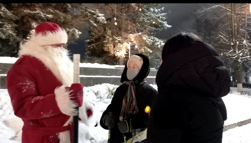 Появление Полицейского Деда Мороза на главной площади города вызвало у прохожих бурю положительных эмоций. Страж порядка пожелал участникам дорожного движения здоровья, добра, исполнения желаний и безопасности на дорогах.