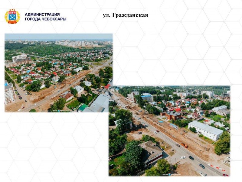Завершение масштабных работ по ул. Гражданской. Срок выполнения работ по контракту - до 30.11.2022 года. В настоящее время откорректированная проектная документация находится на проверке в госэкспертизе Чувашии. В марте ПАО "Дорисс" должен приступить к работам по врезке газопроводов, далее начнется перекладка кабельных линий и устройство дорожной одежды.