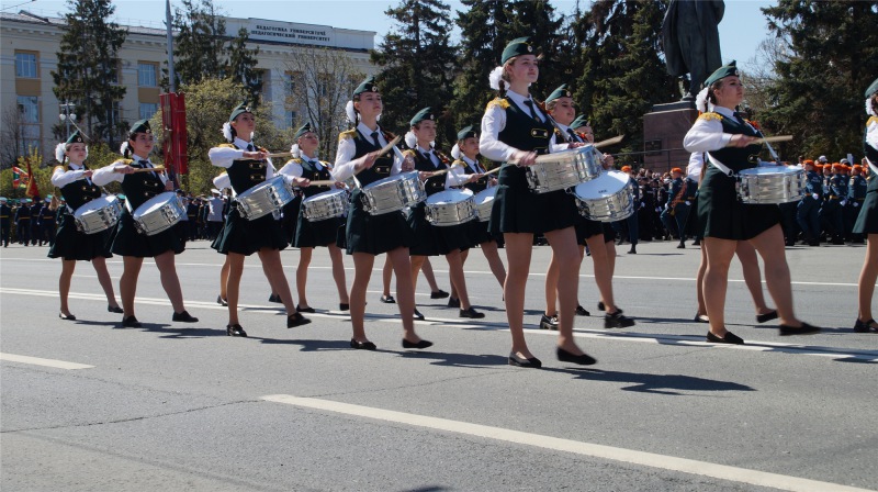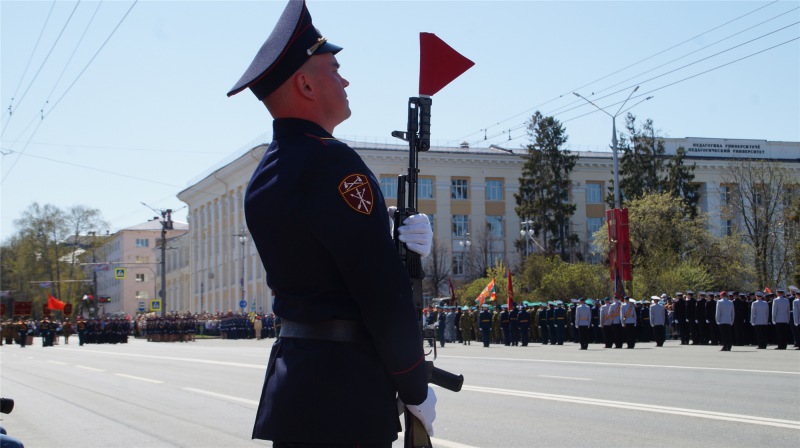 После минуты молчания под марши военного оркестра Управления Росгвардии по Чувашской Республике состоялось торжественное прохождение сводного полка Чебоксарского гарнизона и военной техники, посвященное 77-й годовщине Победы в Великой Отечественной войне. В параде приняли участие 1 200 человек. Перед зрителями прошли более полусотни единиц боевой техники. На головном автомобиле - боевое знамя 1095-го стрелкового полка. Колонну военной техники составили техника времён Великой Отечественной войны и первых послевоенных лет, техника, которая сейчас находится на вооружении силовых министерств и ведомств, и техника на автомобильном шасси военного назначения, которая выпускается предприятиями Чувашии.