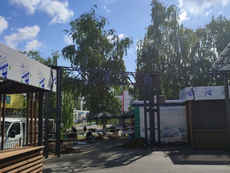 В рамках празднования Дня Республики на улице Эльгера, 11 состоится открытие фермерских торговых рядов. В настоящий момент завершается монтаж конструкций, изготовление и установка вывески. Кроме того, подрядная организация и работники жилищно-коммунального хозяйства приведут территорию в порядок, уберут строительный и случайный мусор.