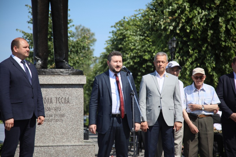 В завершение торжественного мероприятия почетные гости возложили живые цветы к памятнику Николы Теслы, после чего для всех собравшихся состоялся праздничный концерт.