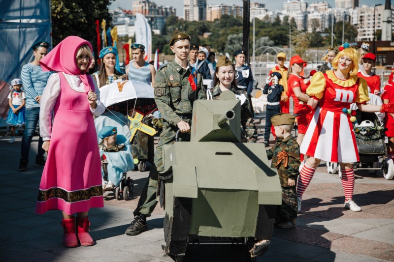 3 место - семья Охливанкиных с коляской "Тяжелая артиллерия" из номинации "Маленький патриот".