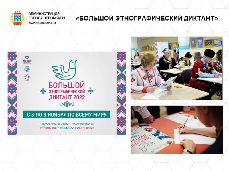 С 3 по 8 ноября пройдет ежегодная международная просветительская акция "Большой этнографический диктант" в онлайн и офлайн форматах. Написать диктант в офлайн формате можно 3 ноября в Чувашском национальном музее. Начало диктанта в 11.00 час. Ответить на вопросы в онлайн можно на официальном сайте www.miretno.ru с 3 по 8 ноября.