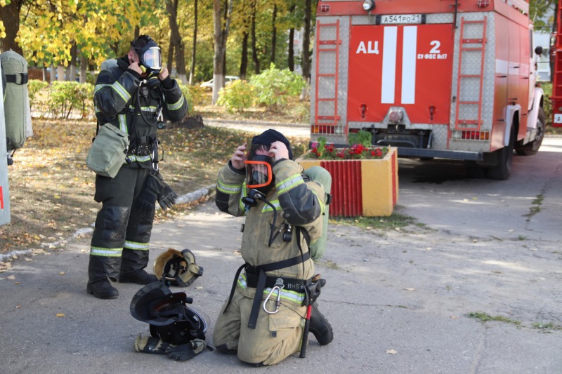 По замыслу учения произошёл условный пожар в результате короткого замыкания на складе декораций и распространился на сцену зрительного зала, площадь пожара составила 120 кВ.м. Из здания самостоятельно эвакуировались 23 сотрудника, 2 остались в здании, которые были спасены пожарными подразделениями. В учениях принимали 8 единиц основной Пожарной техники и 1 специальная коленчатый подъёмник АКП-50. Силы и средства были задействованы Новочебоксарского пожарно-спасательного гарнизона и г. Чебоксары