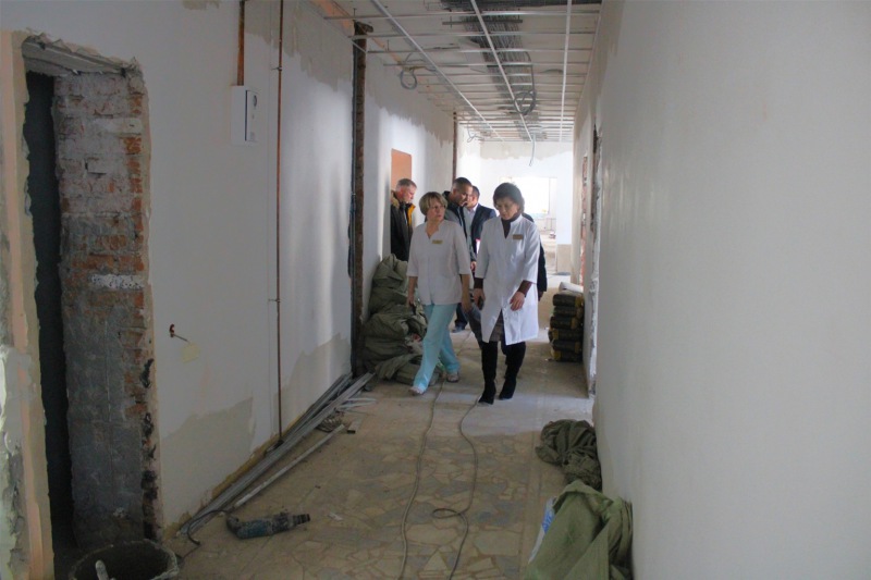 В данный момент строительно-монтажные работы продолжаются на втором и третьем этажах здания. По завершении ремонта на втором этаже будут размещены отделения общеврачебной практики №1, процедурный кабинет, кабинеты узких специалистов и функциональной диагностики. Третий предполагается отдать специалистам хирургического профиля - здесь будут вести прием урологи, хирурги, травматологи, отоларингологи.