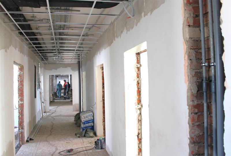 "В данный момент полностью завершен демонтаж, выполняются общестроительные работы (штукатурка стен, выравнивание поверхностей, укладка кафельной плитки, напольных покрытий), монтируются подвесные потолки. Бригада продолжает обустройство вентилируемого фасада, заканчивает работу по прокладке кабелей электроснабжения и освещения, ведется прокладка интернет-кабелей и кабелей систем видеонаблюдения. Смонтированы стояки систем водоснабжения и водоотведения, рабочие приступают к подключению сантехнического оборудования", - сообщил заместитель главного врача по административно-хозяйственной части Евгений Кузнецов.
