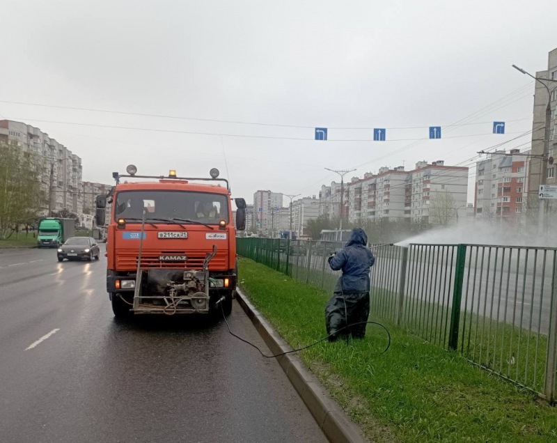 На завершающей стадии мытье ограждений (всего к мойке запланировано 39 тысяч погонных метров конструкций), ведется их поэтапная покраска.