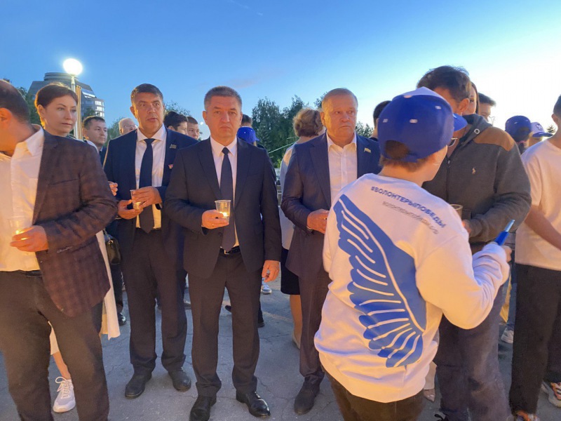 Почётные гости, ветераны, участники СВО, студенты и школьники, волонтеры Победы, активисты Волонтерского центра города Чебоксары прошли по площади, держа в руках зажженные свечи, и в едином порыве поставили их у Вечного огня.
