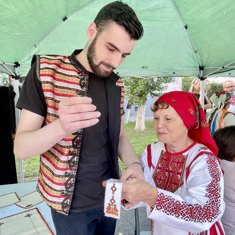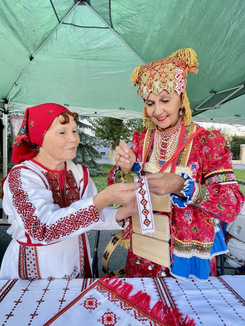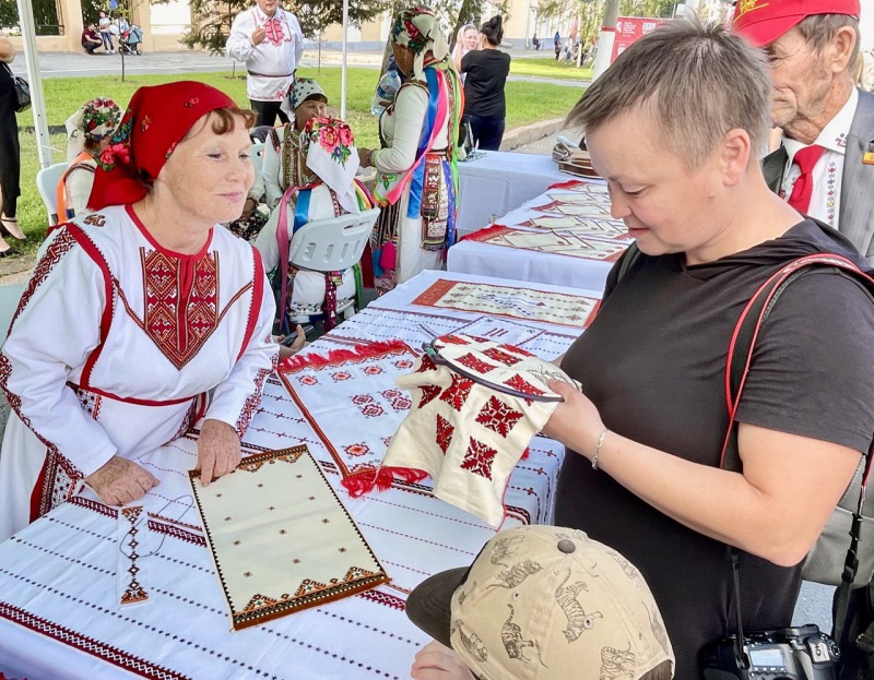 Дети и взрослые фотографировались с ростовыми куклами, учились вышивать, примерили традиционные узбекские тюбетейки, а гости из Марий Эл привезли для чебоксарцев мастер-класс по национальной марийской вышивке и марийские песни, хороводы в исполнении участников творческого коллектива под руководством уроженца Сидельниково Звениговского района Анатолия Мартынова.