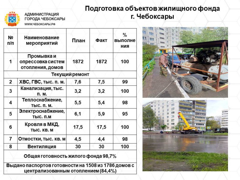 - промыто и опрессовано все 1872 жилых дома города Чебоксары;