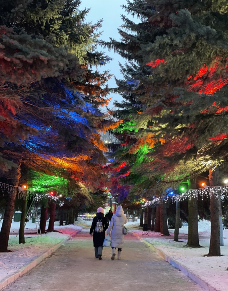 Как сказано в пресс-релизе Администрации г. Чебоксары Чувашской Республики, уже сейчас здесь установлены яркие новогодние арт-объекты, развешены сверкающие гирлянды, создавая праздничную атмосферу. А благодаря поддержке администрации города Чебоксары входная группа и ели на аллее парка теперь украшены более чем 20 разноцветными прожекторами, которые добавляют пространству особое очарование.