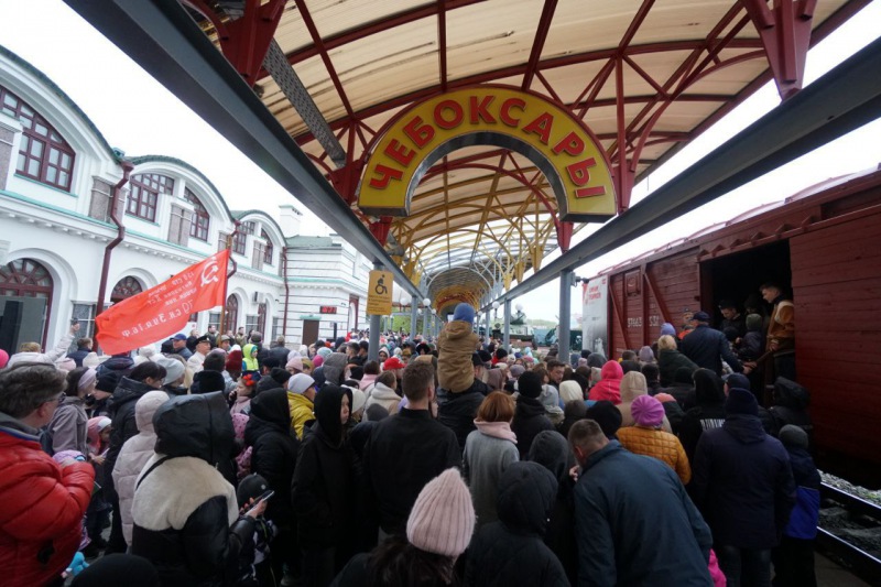 Встречать музей на колёсных путях пришли министр труда Чувашии Алена Елизарова, глава города Чебоксары Владимир Доброхотов, представители руководства железнодорожного вокзала, ветераны и многочисленные горожане.