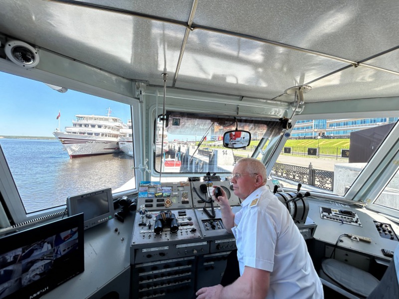 «У нас теплоход «Чувашия» берет на борт 243 человека за раз. В жаркую погоду очень много желающих переправиться на левый берег. Тогда мы отправляем сразу два теплохода следом друг за другом», — рассказал капитан теплохода «Чувашия», — Михаил Мохаткин.