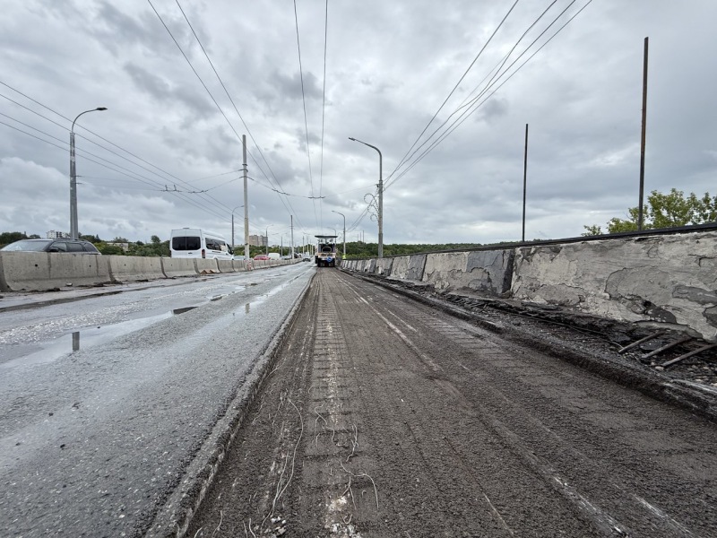 Но на этом работы не закончились. С 1 июля начались ремонтные мероприятия на второй половине моста. Здесь проводятся необходимые подготовительные процедуры: начато фрезерование старого асфальтового покрытия.
