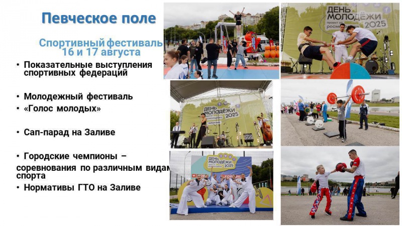 Певческое поле соединит в себе энергию спорта и музыки. 16 и 17 августа здесь будет жарко: выступления спортивных федераций, открытые чемпионаты будут сменяться силой музыки. Зарядим город энергией!