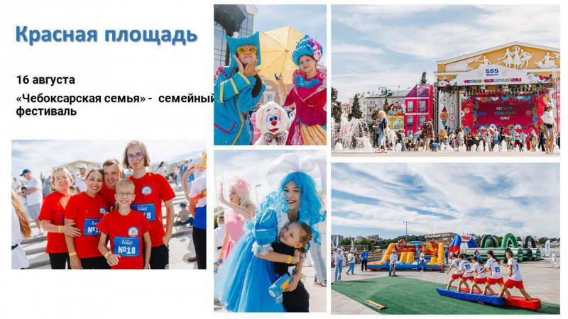 На Красной площади — фестиваль «Чебоксарская семья», на площади Республики - выставка «Город в кадре» с лучшими работами наших фотографов.