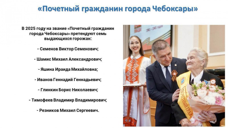 «День города отпразднуем по-семейному, душевно и тепло. Планируем к открытию важные социальные объекты и вручим награду Почётному гражданину города Чебоксары, которого вы, чебоксарцы, выберете на портале «Открытый город».