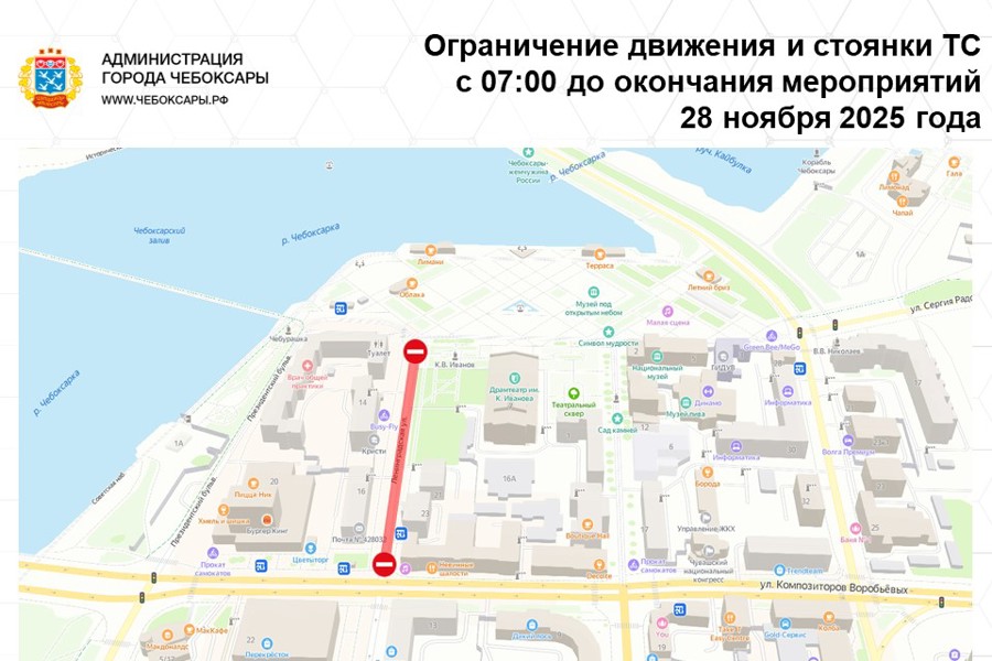 Уважаемые чебоксарцы и гости города! Просим вас заранее планировать маршруты и учитывать изменения в организации дорожного движения. Соответствующее постановление подписано в администрации г.Чебоксары.