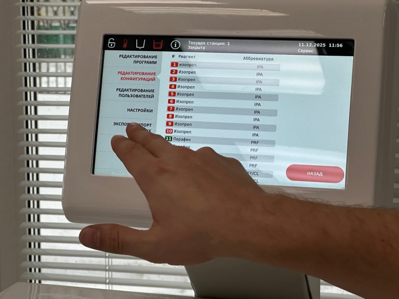 Новый гистологический процессор призван автоматизировать ключевой этап лабораторного исследования — подготовку образцов тканей к микроскопическому анализу. Принцип работы аппарата построен на чётком технологическом цикле: после того как эксперт помещает биоматериал в специальные кассеты, оборудование последовательно выполняет обезвоживание и пропитку тканей парафином. Это необходимо для последующего изготовления ультратонких срезов. Вся дальнейшая обработка проходит в автоматическом режиме, что существенно снижает трудозатраты персонала.