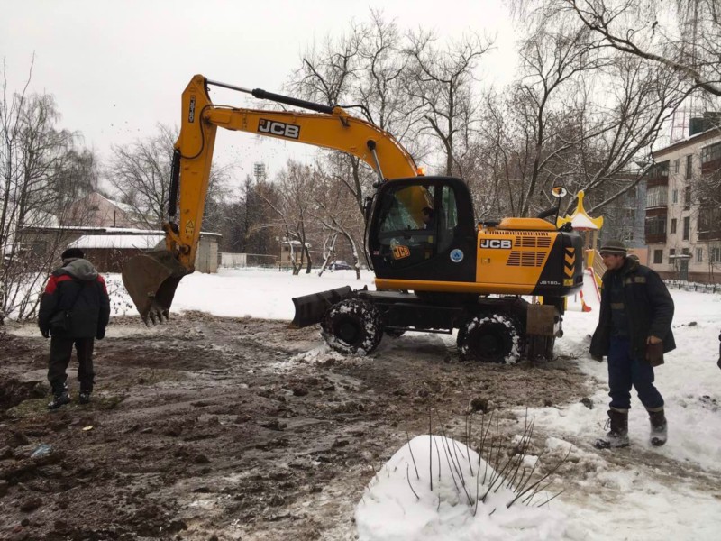 В стесненных условиях работает аварийная служба АО "Водоканал", которая устраняет последствия повреждения трубы водовода диаметром 900 мм во дворе дома № 11 по ул. Николаева.