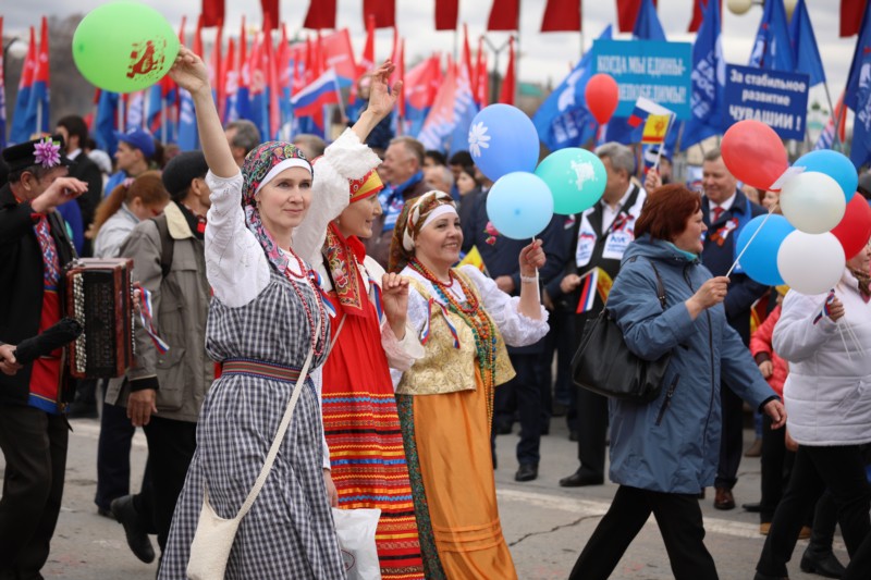 В столице республики – г. Чебоксары – в составе 35-тысячной праздничной колонны прошли Глава Чувашии Михаил Игнатьев, председатель Чувашского республиканского объединения организаций профсоюзов «Чувашрессовпроф» Анатолий Коршунов, Председатель Государственного Совета Чувашской Республики Валерий Филимонов, член Совета Федерации Федерального Собрания Российской Федерации Вадим Николаев, депутаты Государственной Думы Российской Федерации Леонид Черкесов и Николай Малов, члены Кабинета Министров Чувашской Республики, руководители и сотрудники органов местного самоуправления.