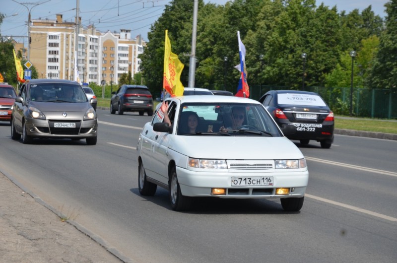 Участники автопробега праздничной колонной, украшенной флагами Российской Федерации, Чувашской Республики и города Чебоксары, проехали по главным улицам столицы.