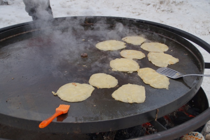 Неподалеку, в обустроенных домиках-палатках, все желающие могли отведать горячих шашлыков и готовящихся здесь же на большой сковороде блинов, приобрести различного рода продукцию.