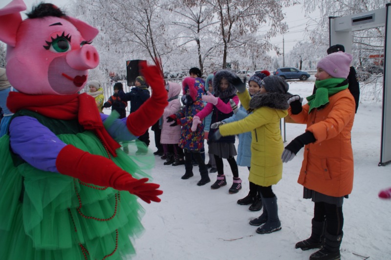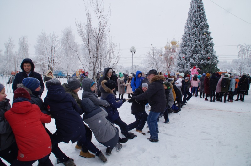 Пришедших на общественное пространство встречали веселые сказочные и мультяшные герои. Малышей и взрослых ждали увлекательные зимние забавы, конкурсы, новогодние представления. Мерзнуть и скучать на этом празднике было просто некогда! Веселые песни, заводные мелодии – ноги сами шли в пляс, а появление Деда Мороза стало причиной неподдельной радости самых маленьких деток и ребятишек постарше.