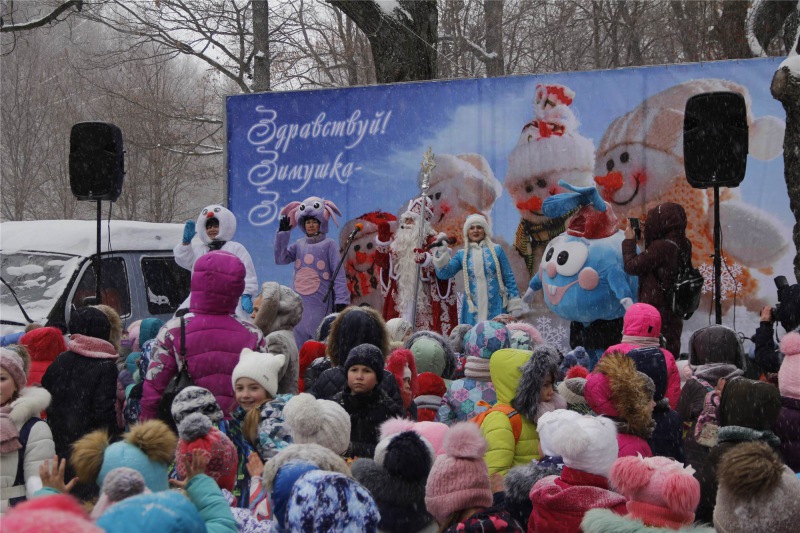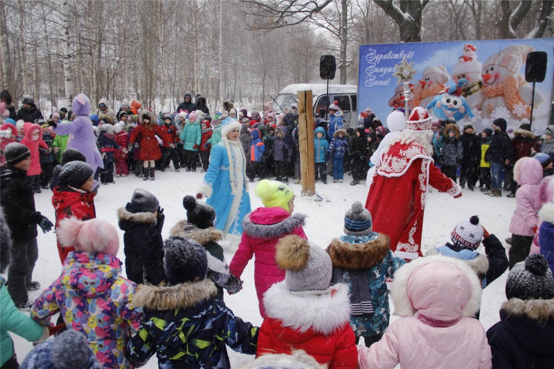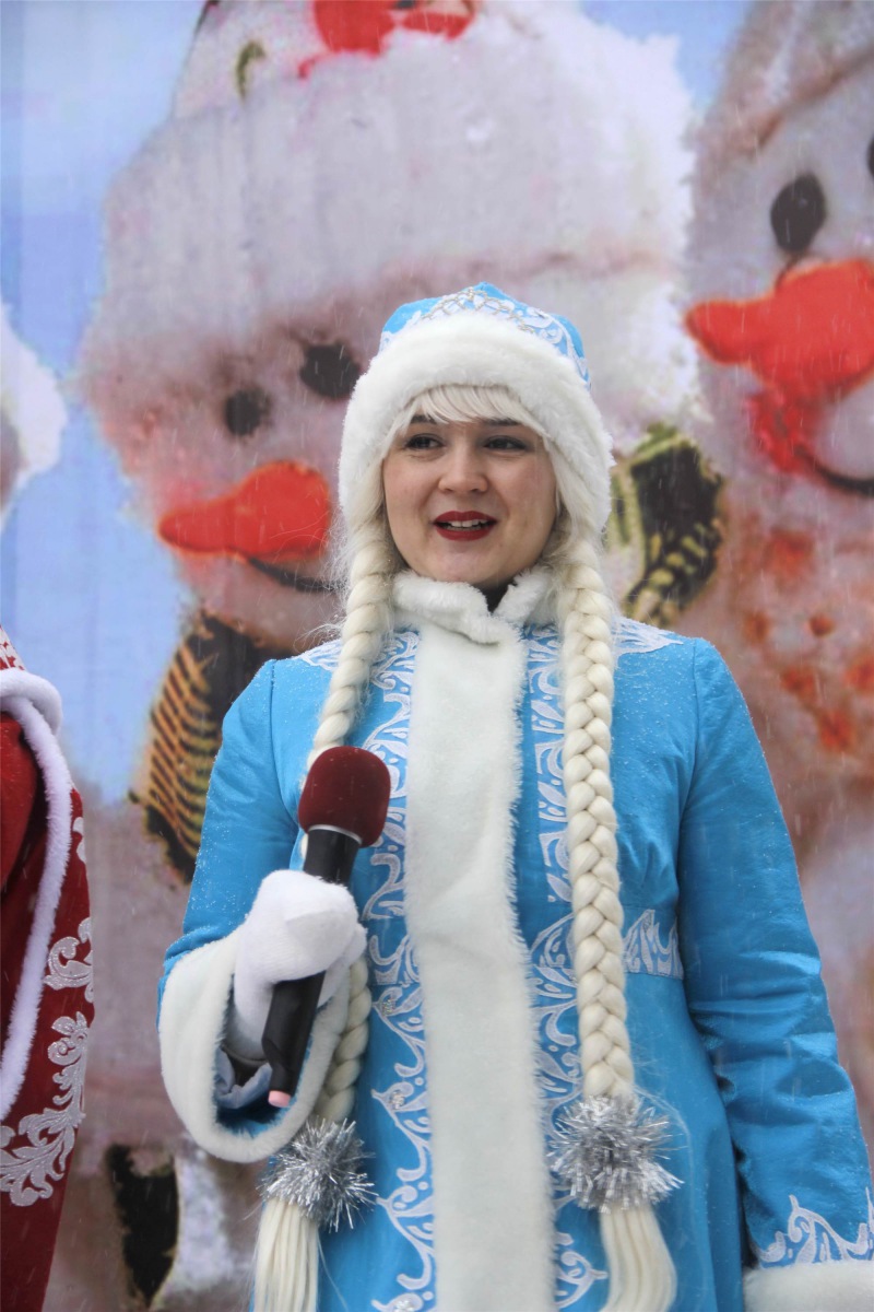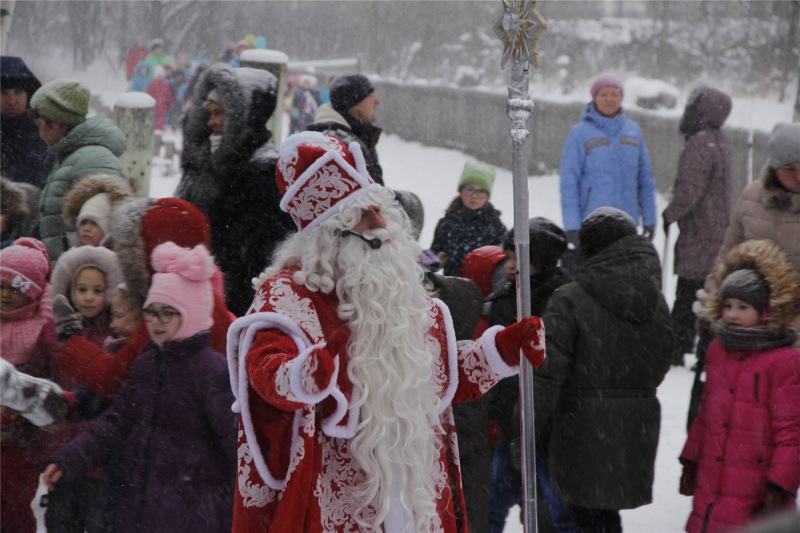 На долгожданный праздник к ребятам прибыли сказочные герои и персонажи любимых мультфильмов. Вместе с ними воспитанники детских садов и учащиеся младших классов школ хором позвали Деда Мороза и Снегурочку. Главные гости торжества не заставили себя ждать, они устроили для ребят веселые танцы и большой хоровод.