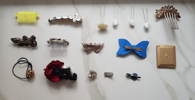 Заколки, гребни, гребешки, шпильки, резинки, невидимка, украшения, бижутерия для волос, зеркало косметическое двухстороннее карманное квадратное, всё женское, в ассортименте, на фото все виды по одной штуке в наличии, всё б/у, в хорошем состоянии, заколки, гребни по 50 руб. за штуку, шпильки по 50 руб. за штуку, резинки по 50 руб за шт, маленькие мини-заколки и невидимка по 30 руб. за штуку, зеркало косметическое за 50 руб, продаю. Тел. 8-927-846-95-36.