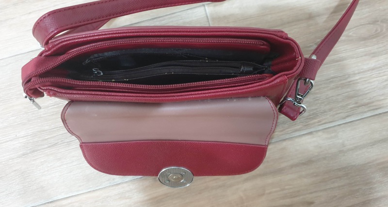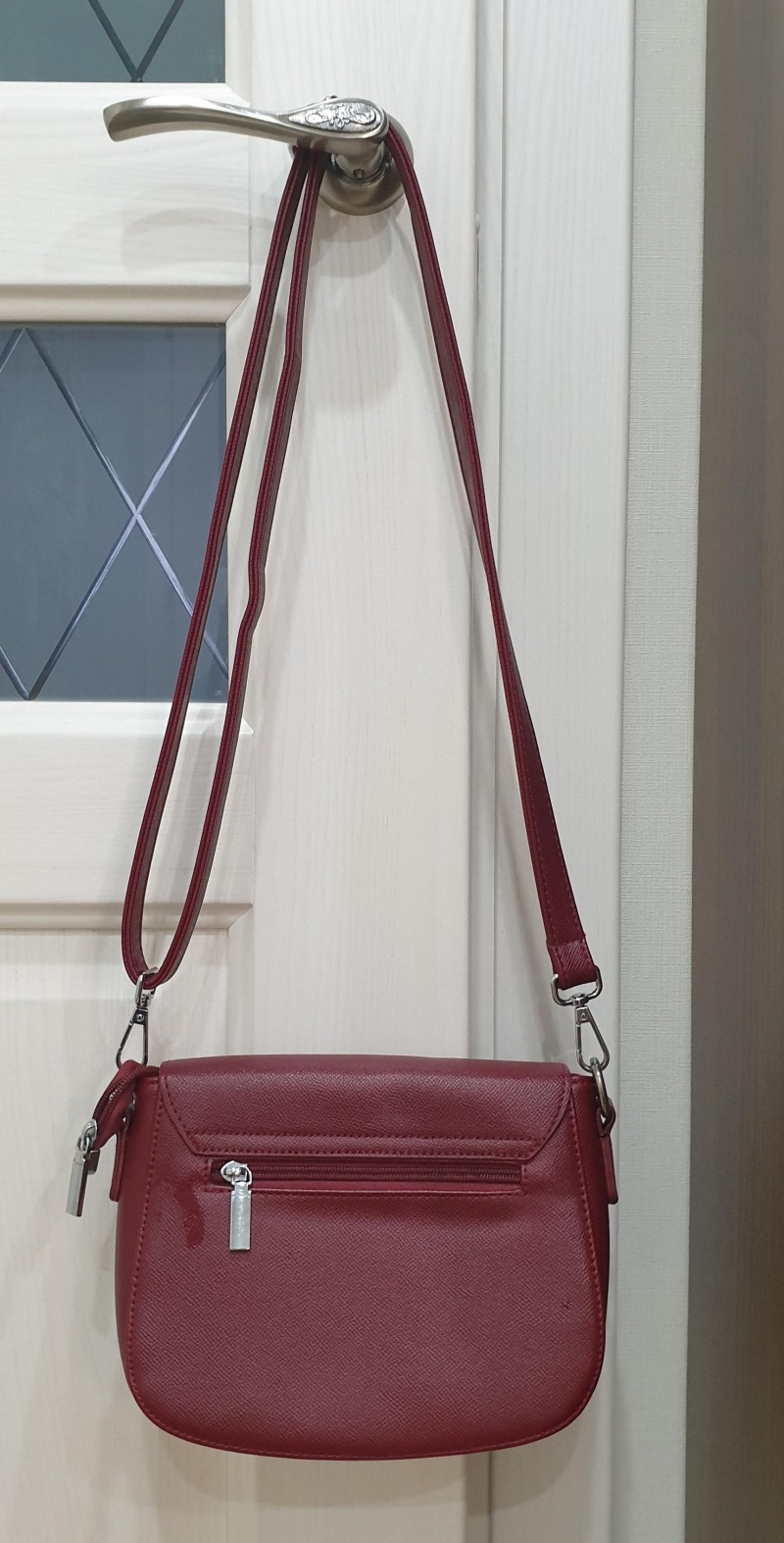 Сумка женская через плечо, бордового цвета, ширина 25 см, высота 19 см, глубина по низу 8,5 см, имеет 6 больших отделений, центральное отделение на молнии, дополнительно есть 2 мини-отделения на молниях, сверху закрывается на кнопку, материал экокожа. Сумка б/у, в хорошем состоянии, за 500 руб, продаю. Могу отправить почтой или Юла доставкой в любой город РФ.