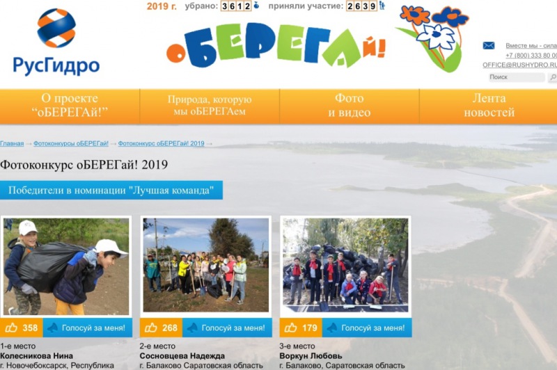 Традиционный конкурс фотографий прошел в продолжение 15-го сезона «оБЕРЕГАй». За годы существования акция по уборке берегов водоемов в регионах присутствия Группы РусГидро переросла в экологическое движение, включающее посадку и уход за зелеными насаждениями, благоустройство пляжей, набережных и парков, экологические сплавы и очистку скал от вандальных надписей. В 2019 году более 2,6 тысяч человек из 20 регионов собрали свыше 3,6 тысяч мешков мусора.