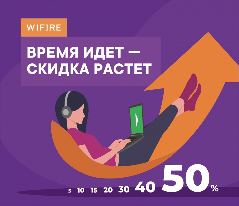 Wifire запустил акцию 'Надолго' Так уж получается, что в современных реалиях цены регулярно растут. Но у бренда Wifire все абсолютно по-другому. Чем дольше вы пользуетесь услугами компании, тем меньше вы платите.