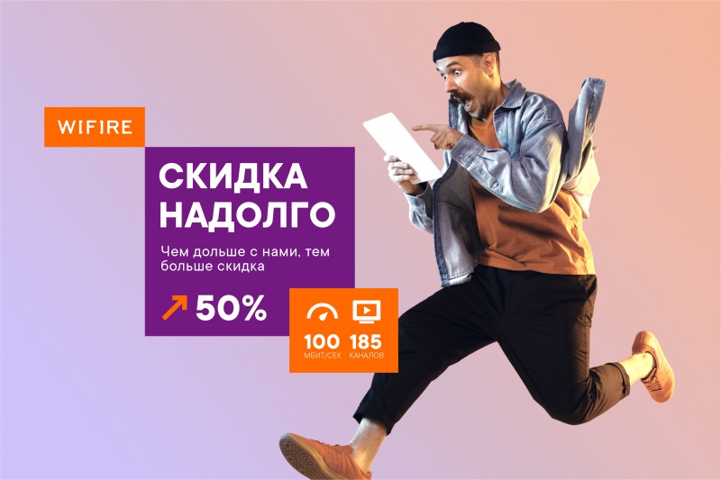 Интернет-провайдер Wifire запустил акцию «Надолго». Клиенты получают скидку на абонентскую плату, если в долгосрочной перспективе выбирают услуги Wifire.