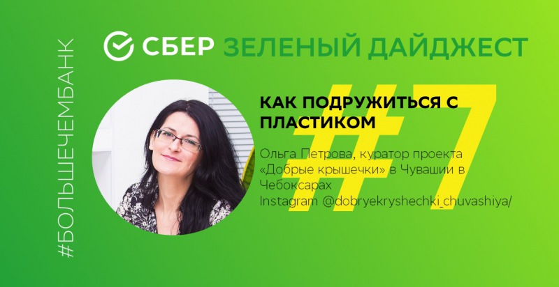'Зеленый дайджест' Сбера: как примириться с пластикомПластик – отличный универсальный материал. Жизнь без него кажется невозможной. Легкий, пластичный, долговечный! Но при этом разовые пакеты забивают канализационные системы наших городов, пластмассовый мусор засоряет пляжи и прибрежные зоны, а микрогранулы пластика и его химикаты просачиваются к ближайшим источникам воды, что нередко приводит к массовой гибели животных. Сегодня в рамках образовательного проекта «Зеленый дайджест» Сбера порассуждать* о вреде пластика и о том, как его минимизировать, мы пригласили Ольгу Петрову – куратора проекта «Добрые крышечки» в Чувашии в Чебоксарах.