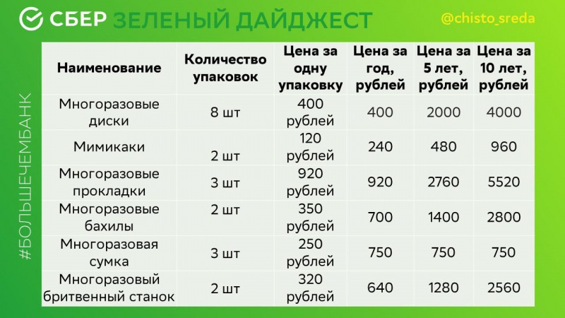 Итого мы заплатим 16 590 р за 10 лет при использовании многоразовых альтернативы сократим количество мусора.