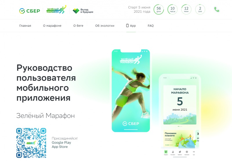В рамках проекта Зелёный Марафон Сбер запустил одноимённое мобильное приложение, в котором доступна регистрация, а также вся информация о проекте.