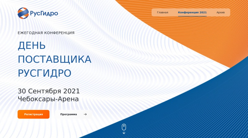 РусГидро приглашает на пятую конференцию «День поставщика», которая пройдет 30 сентября 2021 года в Чебоксарах, Республика Чувашия. Цель конференции – расширение количества участников закупок РусГидро, знакомство участников с системой закупок Группы и изменениями законодательства РФ, регламентирующими закупочную деятельность государственных заказчиков. Участие в конференции бесплатное.