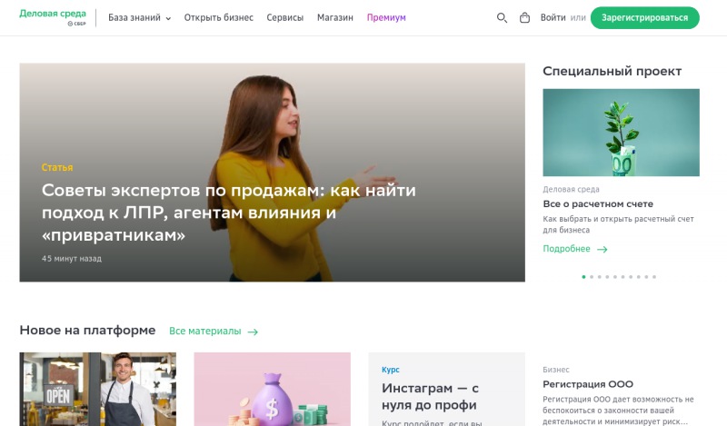 В 2012 году Сбербанк основал дочернюю компанию «Деловая среда». Её миссией стало развитие предпринимательства. Уже много лет компания помогает российским предпринимателям найти идею, запустить свой бизнес и достичь в нём успеха с помощью знаний и сервисов. Совместно с Минэкономразвития РФ в 2018 году компанией была запущена Dasreda.ru — онлайн-платформа полезных знаний и сервисов для бизнеса. За все время на онлайн-площадке зарегистрировалось 1,6 млн пользователей. Сегодня на платформе размещено порядка 1600 образовательных материалов: курсов, статей, видео и пошаговых инструкций по старту и развитию бизнеса от действующих бизнесменов, экспертов и лидеров EdTech-индустрии.