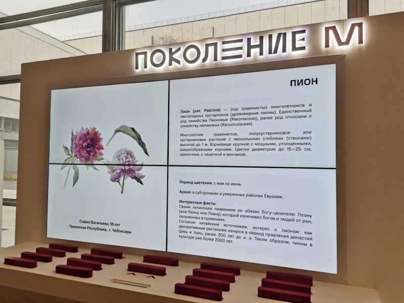 Лучшие работы из загруженных на сайт проекта «Поколение М» были отобраны педагогами и искусствоведами главного музея национального искусства России. В их число вошла и картина «Пионы» студентки Чебоксарского художественного училища Софии Васильевой. Работу девушки можно увидеть в здании Новой Третьяковки до 15 ноября.