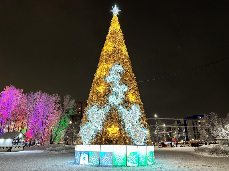 Полюбоваться красавицей-елкой сможет каждый гость и житель города — вход на территорию комплекса бесплатный. Пушистая красавица радует глаз за остановкой общественного транспорта «Студенческий городок». Световая верхушка выполнена в виде полярной звезды, елка украшена новогодними шарами, гирляндами, тематическими фигурами с изображениями ангелов, завитков и ночных светил.