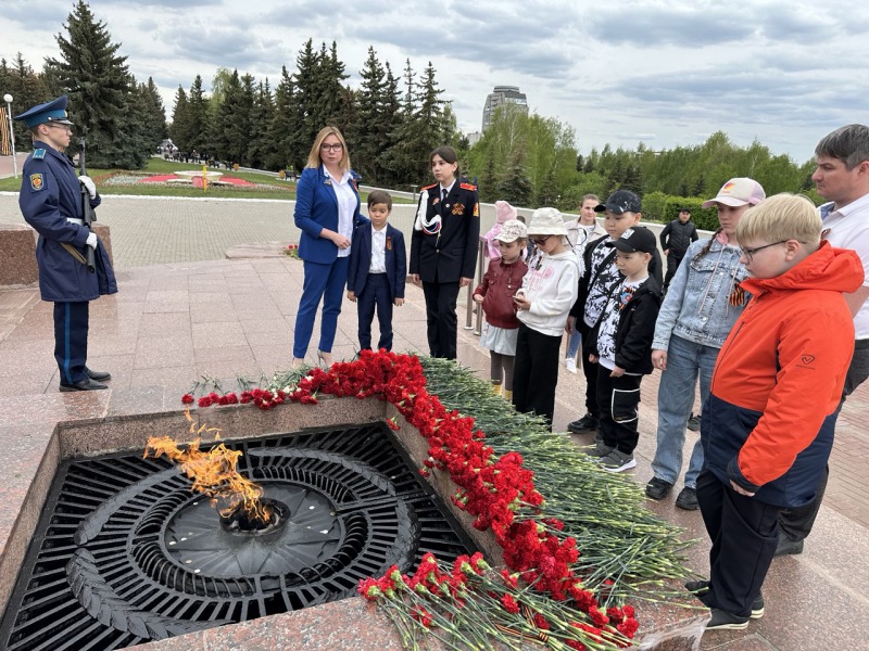 Вторая часть программы развернулась на свежем воздухе. Сотрудники и дети отправились к Вечному огню в Мемориальном парке «Победа» города Чебоксары, где вместе возложили цветы, отдав дань памяти героям минувшей войны.