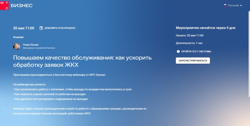 20 мая в 11:00 (мск) Повышаем качество обслуживания: как ускорить обработку заявок ЖКХ