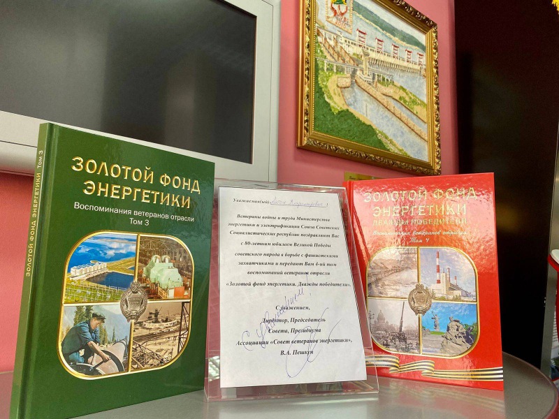 Одна из задач Ассоциации «Совет ветеранов энергетики» - систематизация, публикация и распространение материалов по истории развития энергетики, воспоминаний ветеранов, передача личных архивов заслуженных деятелей отрасли в архивы и музеи. В завершение встречи директор Ассоциации Владимир Пешкун вручил директору Чебоксарской ГЭС Антону Дорофееву два тома издания «Воспоминания ветеранов отрасли» из серии «Золотой фонд энергетики». Том «Дважды победители» о подвиге энергетиков в годы Великой Отечественной войны посвящен 80-летию Победы и Году защитника Отечества.